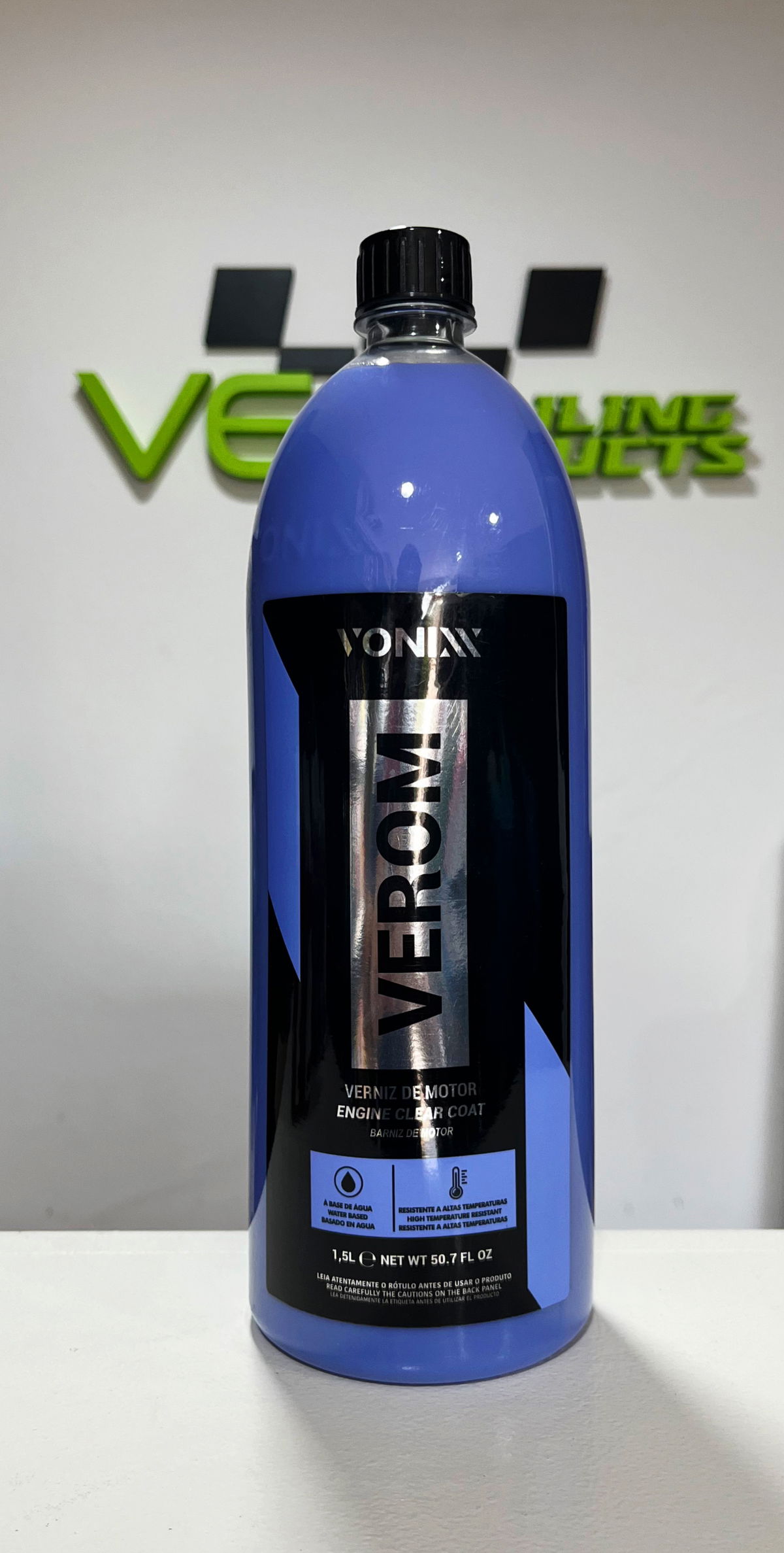 Producto en base acuosa que protege, abrillanta y renueva todas las superficies existentes en el vano motor, como piezas metálicas y plásticas, superficies pintadas y mangueras de goma. El producto forma una película que penetra en lugares difíciles y se adhiere a todas las superficies mencionadas. VEROM es resistente a altas temperaturas y tiene una duración de hasta cuatro meses. También se puede utilizar en chasis y cajas de ruedas, aportando las mismas prestaciones que su aplicación en el motor.