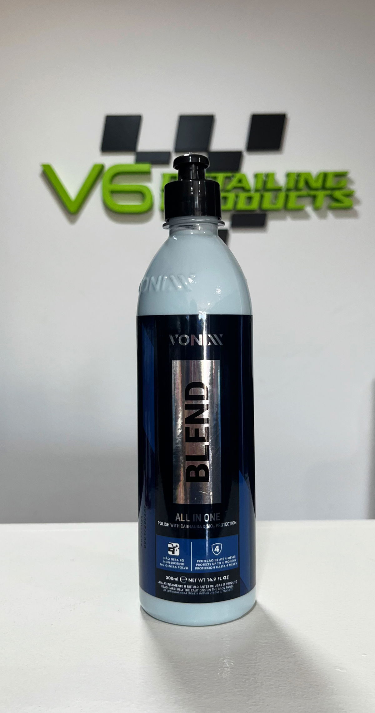 Blend All In One es un pulidor de una sola etapa con protección, que combina el brillo de la carnauba y la resistencia cerámica del SiO2, promoviendo también la repelencia al agua en la pintura. Su alto poder de corte elimina rayones y remolinos de medios a severos (comparables a P2000 o marcas de lijado más finas), dejando un gran acabado al mismo tiempo.