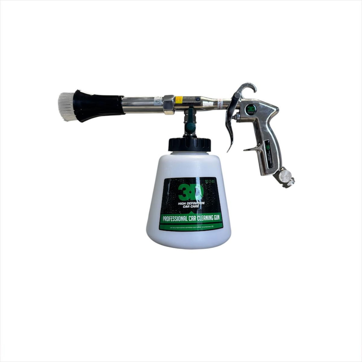 Esta pistola de Limpieza brinda la más rápida y fácil manera de limpiar todas las superficies del interior de un vehículo. Trabaja con un compresor de aire que le da la potencia para que el limpiador contenido en el recipiente de la pistola (desengrasante / shampoo) alcance las grietas en las cuales no se pueden alcanzar con la mano. Limpia alfombras, plásticos, y tapicería del interior del vehículo.