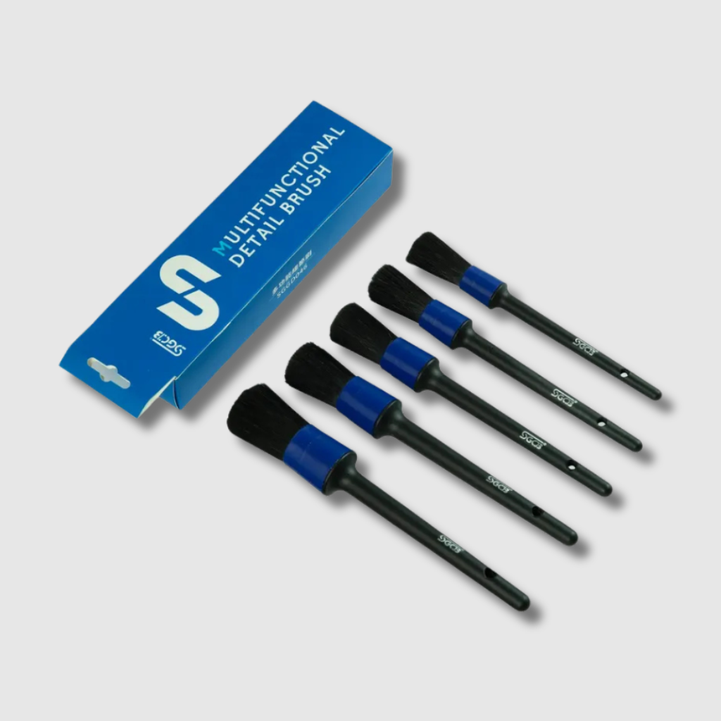El SET DE 5 CEPILLOS PROFESIONALES PARA DETALLE SGCB es una herramienta versátil y de alta calidad para el detallado de autos. Con cinco tamaños de cepillo diferentes, es perfecto para limpiar zonas estrechas y de difícil acceso en tu coche. Fabricados con fibra resistente y cerdas de cerdo, estos cepillos ofrecen una limpieza eficaz a la vez que protegen las superficies de tu coche. Los mangos ergonómicos garantizan un agarre cómodo, facilitando y haciendo más eficientes las tareas de detallado. Ideal para limpiar llantas, salpicaderos, asientos y más, este set es imprescindible para los amantes de los coches.