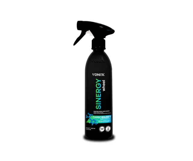 SINERGY WHEEL SPRAY COATING fue desarrollado para proteger y dar brillo a las ruedas con protección por hasta 6 meses. El producto cuenta con la nanotecnología exclusiva de Vonixx, CARBOSILOXY, donde el elemento químico carbono actúa en sinergia con el silicio para formar una película resistente y súper hidrofóbica. Uno de los diferenciales de este producto es el tamaño de la cadena de carbono que, al ser más larga, promueve una resistencia superior a las altas temperaturas que pasan del frenado a la rueda.